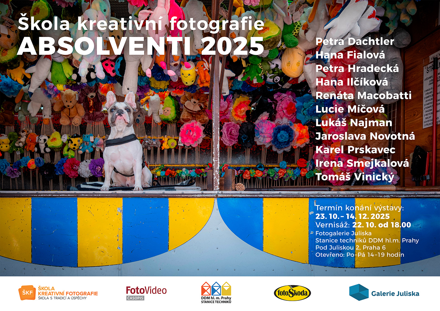 Výstava jedenácti absolventů Školy kreativní fotografie v Praze představuje veřejnosti ty nejlepší volné fotografické práce, které průběžně vznikaly v rámci několika semestrálních kurzů tvůrčí fotografie (kurz příštích vítězů, rekvalifikace, moderní tvůrčí fotografie a nekonečný kurz).