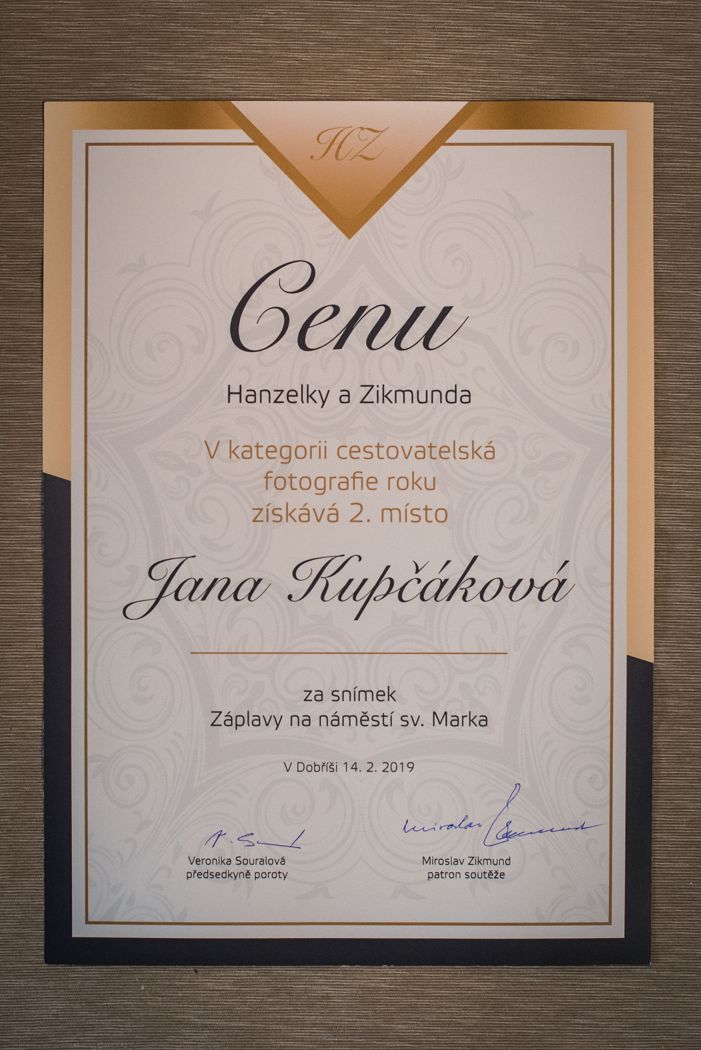 Lektorka naší školy, Jana Kupčáková, získala v prestižní fotografické soutěži O cenu Hanzelky a Zikmunda vynikající 2. místo v kategorii “Cestovatelská fotografie roku” za snímek z italských Benátek pod názvem “Záplavy na náměstí sv. Marka”.